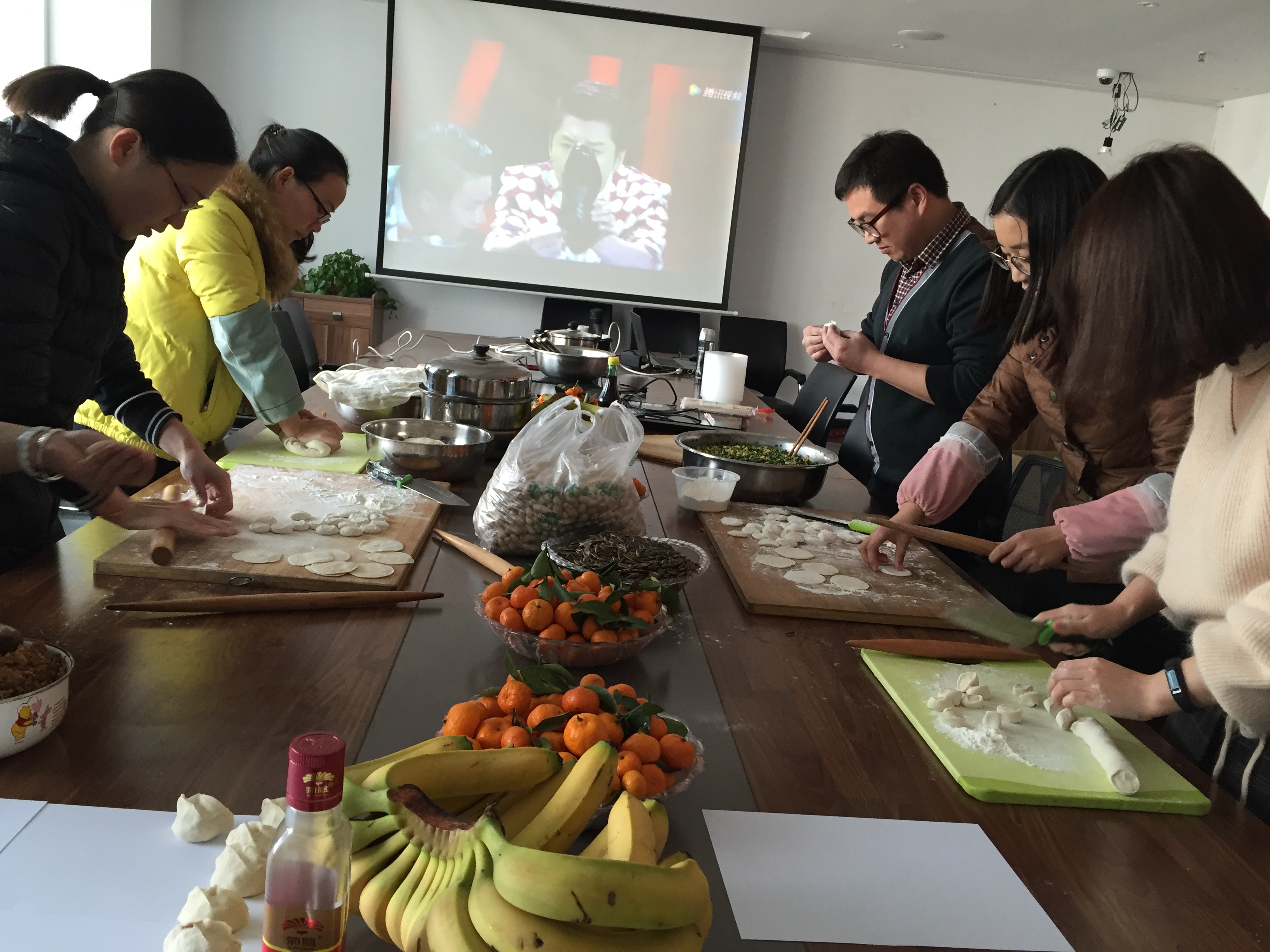年年冬至公司都会举办这样一个活动,不只是为了增进员工与员工之间的协同合作关系,促进感情和友谊,更是企业文化的一种深刻体现。刚到十点,大家活儿就忙碌起来,就是为了赶在,有揉面的、擀皮的、包饺子的,都纷纷拿出各自的看家本领了。饺子也一排排的整齐放在案板上,有素馅的、肉馅的,包的圆的、扁的,各种形状各种口味眼花缭乱,令人胃口大增。